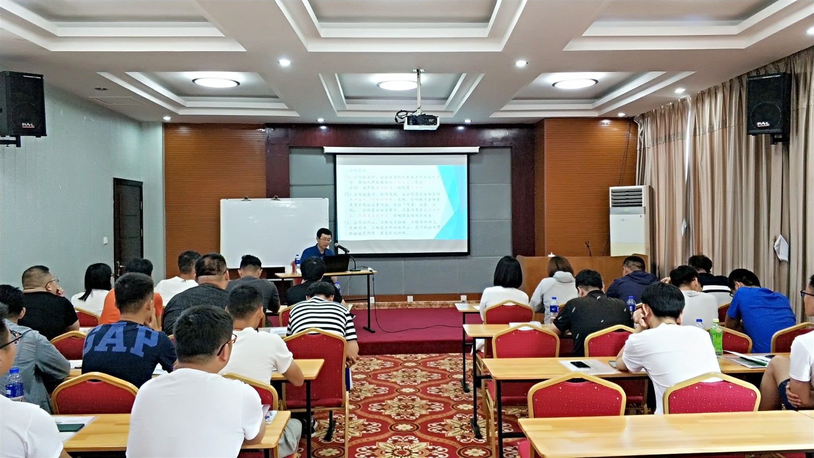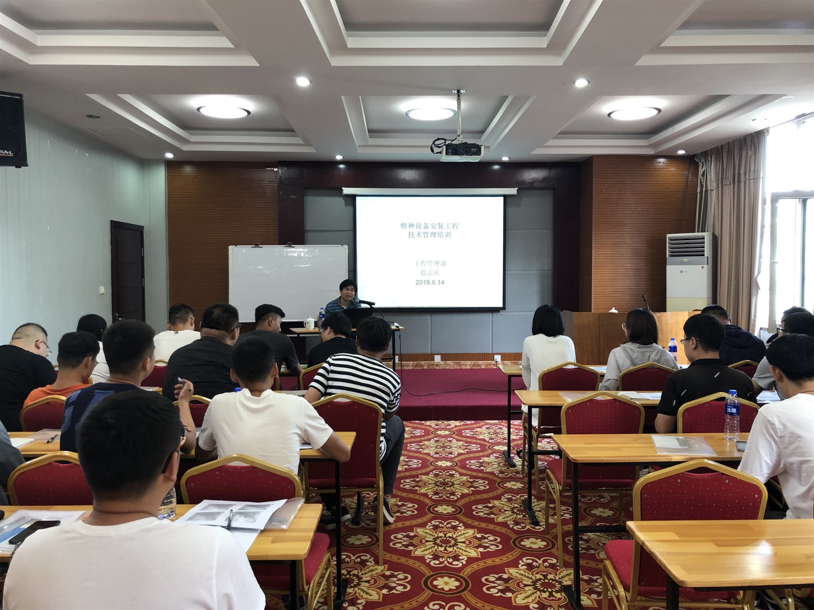 公司內部講師李學慶總工程師、徐志慶副總工程師擔任培訓主講,講授課程分別為《工程項目施工管理》和《特種設備安裝工程技術管理》。講師們在授課中對自己的課程進行講授,并結合長年積累的經驗,分享工程項目現場管理中的施工亮點和問題解決方法,做到了講有所長,學有所用。