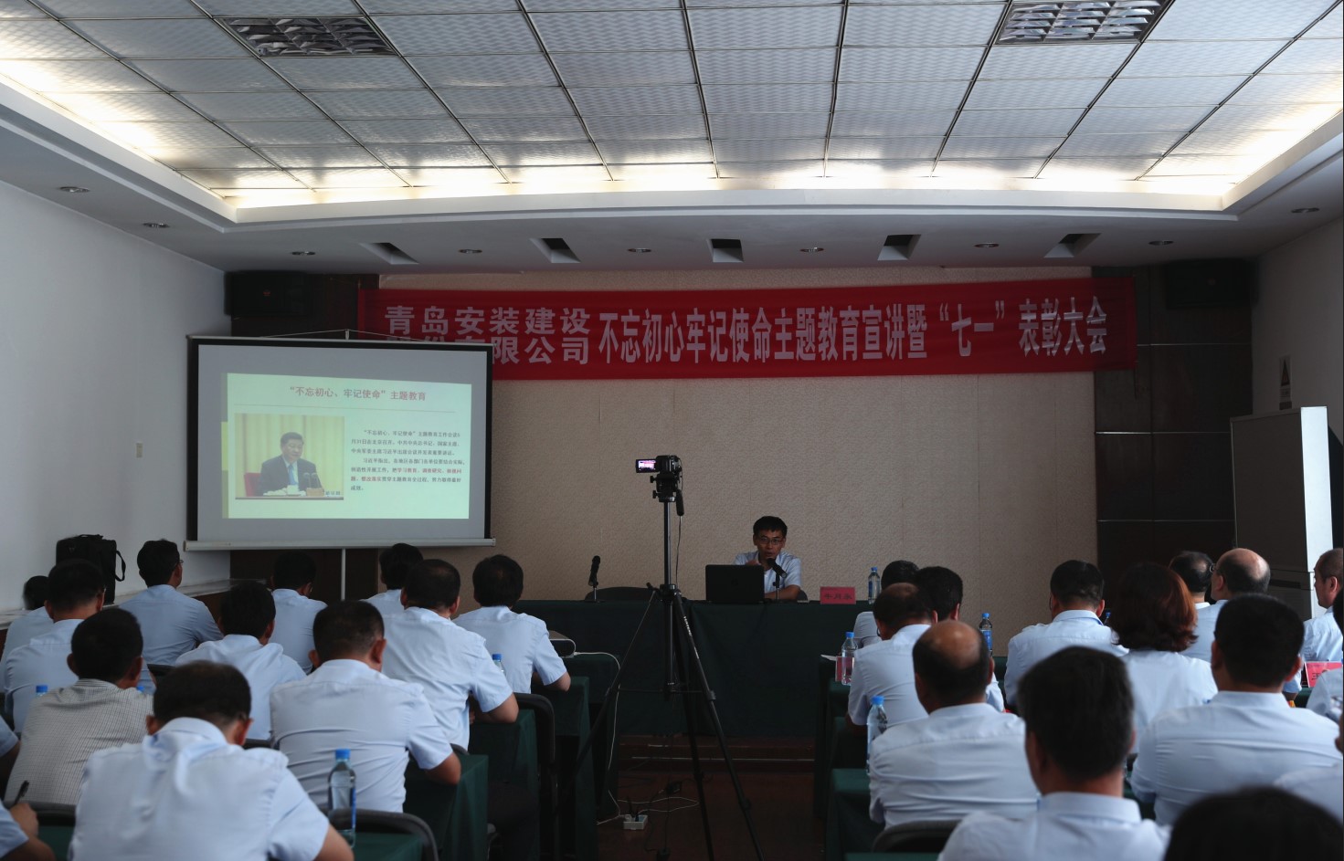 青島安裝建設(shè)股份有限公司“不忘初心、牢記使命”主題教育宣講暨“七一”表彰大會在雄壯的《國際歌》聲中結(jié)束。